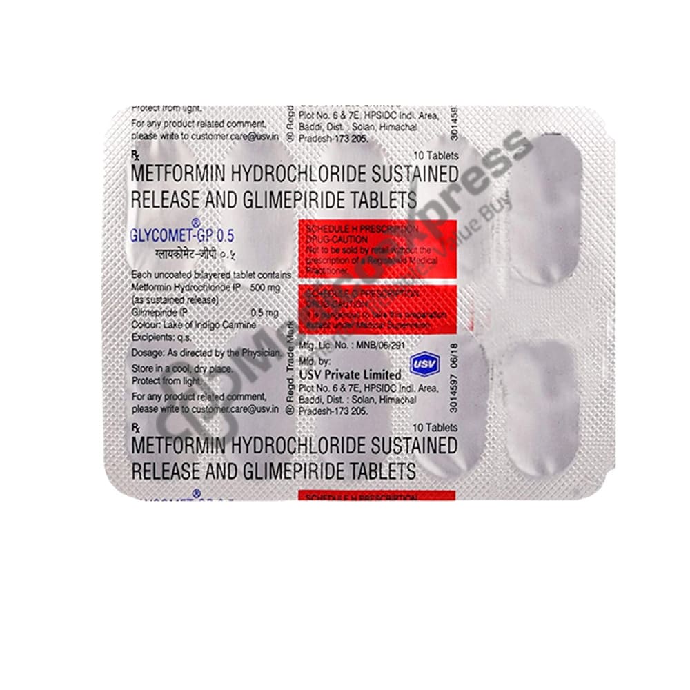 Glycomet-Gp 0.5 Tablet 10's Belongs To a Class Of Drugs Known As Anti-Diabetic Drugs, Which Are Used To Treat Type 2 Diabetes, Particularly In Patients Whose Blood Sugar Levels Are Not Controlled By Diet And Exercise Alone.Disclaimer:For More Information Contact Your Physician