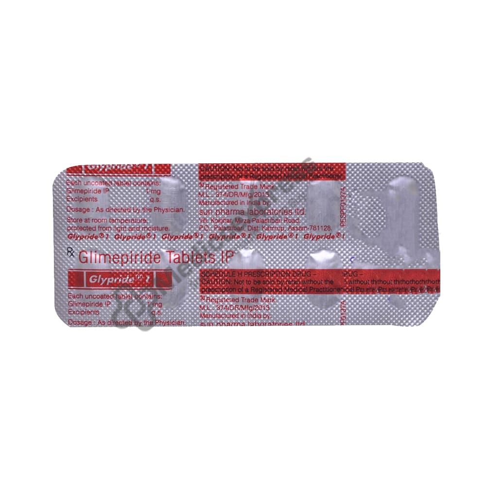 Glypride 1 Tablet is a sulfonylurea medication that is used to treat type 2 diabetes mellitus in adults. It aids in the control of blood sugar levels in diabetics, thereby preventing serious diabetes complications such as kidney damage and blindness.Disclaimer:For More Information Contact Your Physician
