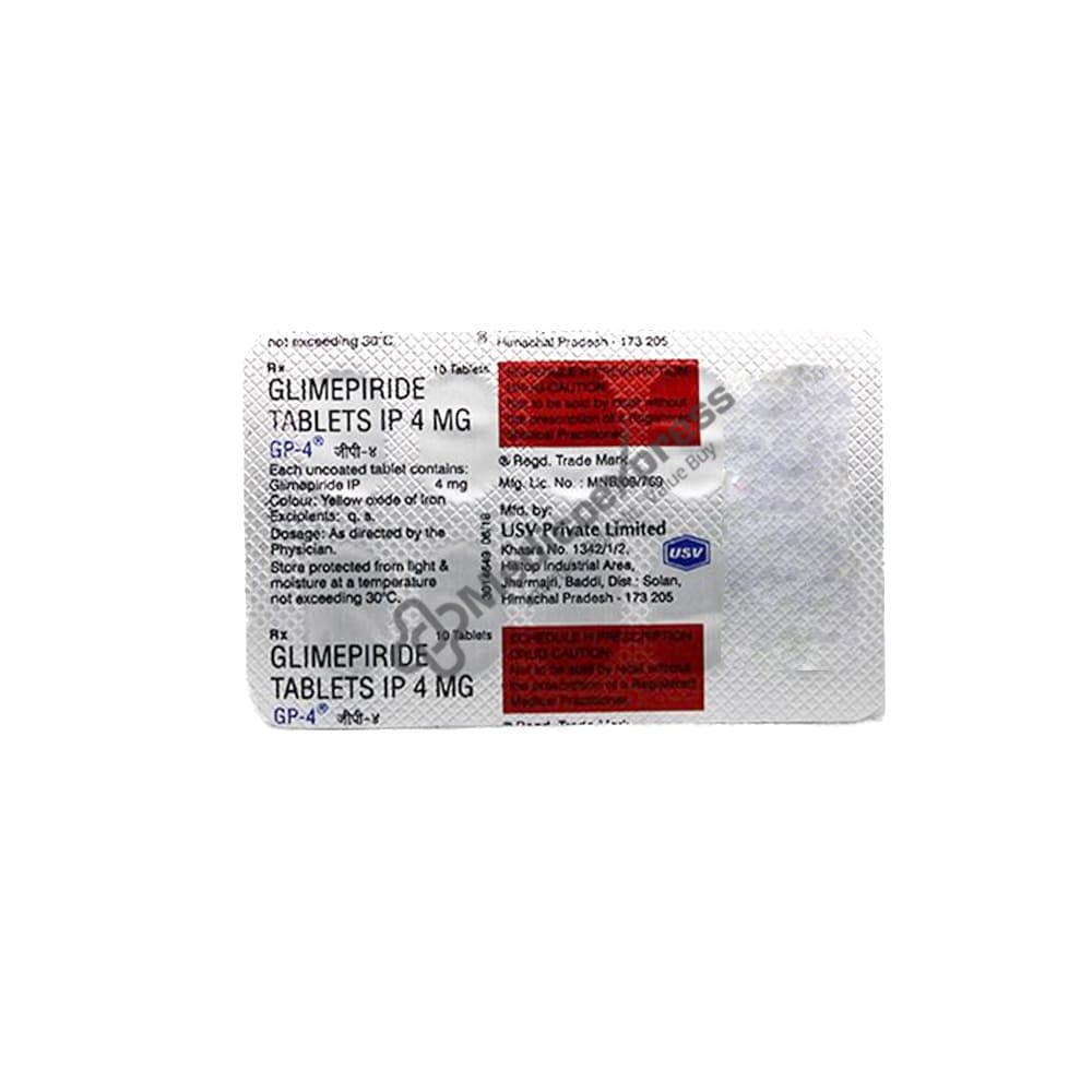 Gp-4 Tablet 10's belongs to the anti-diabetic medication class. Its primary application is in the treatment of Type 2 diabetes. Type 2 diabetes is a long-term condition that affects how your body processes glucose.Disclaimer:For More Information Contact Your Physician