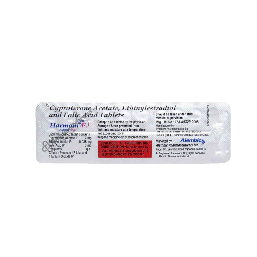Harmoni F Tablet 21 belongs to the class of medications known as 'hormonal drugs,' which are used to treat polycystic ovarian syndrome (PCOS). In addition, it is used to treat severe acne and hirsutism (excessive hair growth in the face and chest) in women. Polycystic ovary syndrome is a condition that affects the ovaries.Disclaimer:For More Information Contact Your Physician