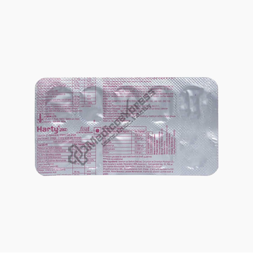 Harty plus capsules are a multimineral, multivitamin, and antioxidant supplement. The capsule aids in the prevention and treatment of nutritional deficiencies.Disclaimer:For more information contact your physician