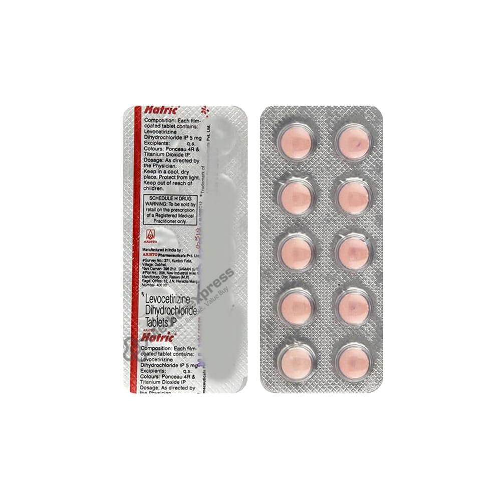 Hatric Tablet is a member of the class of drugs known as antihistamines. It is used to treat a number of allergic conditions, including hay fever, conjunctivitis, eczema, hives, and reactions to stings and bites. Additionally, it stops itching, sneezing, runny nose, and watery eyes.Disclaimer : For More Details, Contact Your Physician