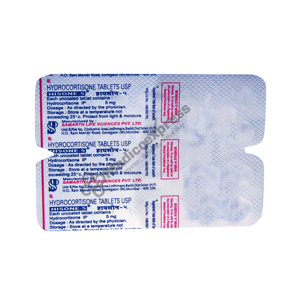 Hisone 5 Tablet belongs to a class of drugs known as corticosteroids. It is used to treat a wide range of diseases and conditions, including severe allergic reactions, allergic conditions, cancer, and skin and eye problems.Disclaimer:For More Information Contact Your Physician