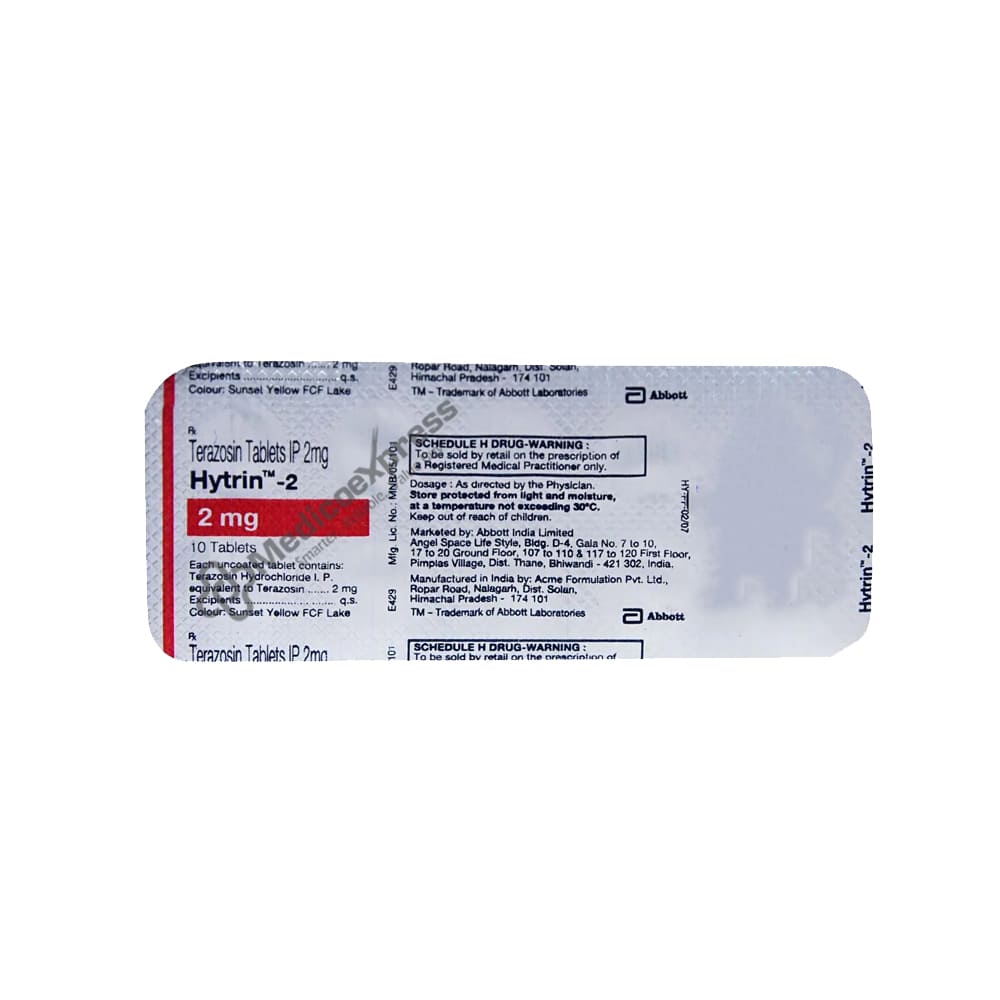 Hytrin 2 Tablet 10 belongs to a class of medications known as 'anti-hypertensives,' which are primarily used to treat hypertension (high blood pressure) and reduce the risk of a heart attack or stroke in the future. It is also used to treat men with mild prostate gland enlargement (Benign Prostate Hyperplasia) and heart failure.Disclaimer:For More Information Contact Your Physician