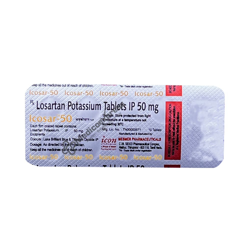 Icosar 50mg tablet 10’s a medication used to treat hypertension and heart failure. Lowering blood pressure helps to prevent heart attacks and strokes in the future. This medication is also effective in preserving kidney function in diabetic patients.