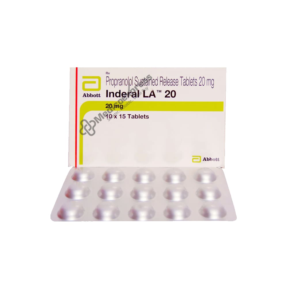 Inderal LA 20 Tablet 15 belongs to a class of medications known as beta-blockers, which are used alone or in combination with other medications to treat high blood pressure (hypertension), heart-related chest pain (angina), heart rhythm disorder (arrhythmia), and migraine headache and tremor symptoms.Disclaimer:For More Information Contact Your Physician