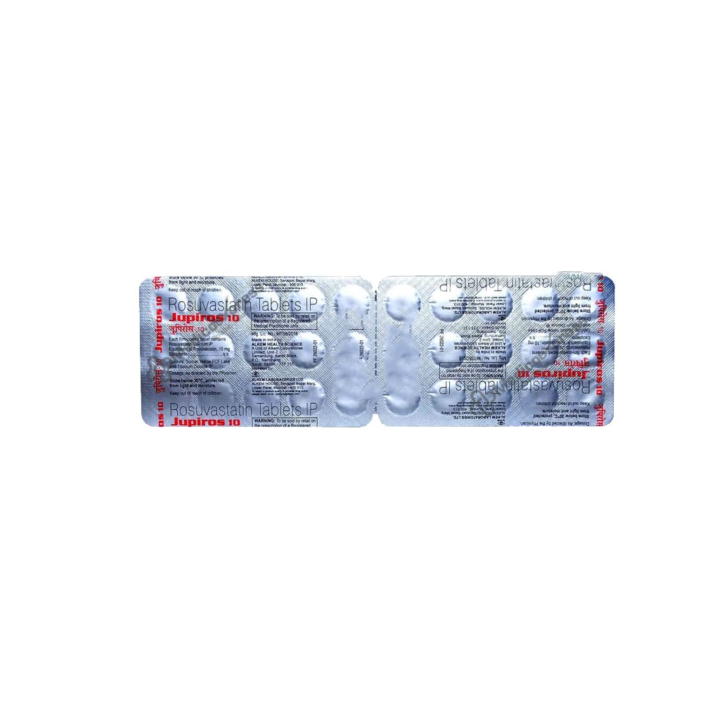 Jupiros 10 Tablet 15's is a member of the statin drug class, which lowers levels of glycerides and bad cholesterol (low-density lipoprotein, or LDL), lowering the risk of heart attack and stroke in the future. When there is an excess of the wrong kind of cholesterol balance in the blood, it is called hyperlipidemia or dyslipidemia, and it raises the blood cholesterol level. Your arteries become restricted and clogged when your blood cholesterol level is high, which eventually leads to heart disorders like stroke and heart attack.Jupiros 10 Tablet 15 works by inhibiting liver enzymes, which reduces the amount of cholesterol the liver produces. The uptake and breakdown of blood cholesterol by the liver is accelerated by Jupiros 10 Tablet 15's.Disclaimer:For more information contact your physician.