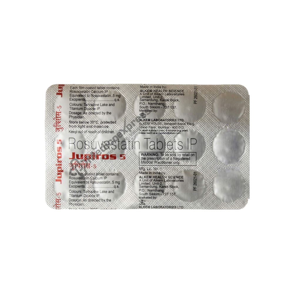Jupiros 5 mg Tablet 15's is a member of the statin drug class, which lowers levels of glycerides and bad cholesterol (low-density lipoprotein, or LDL), lowering the risk of heart attack and stroke in the future. When there is an excess of the wrong kind of cholesterol balance in the blood, it is called hyperlipidemia or dyslipidemia, and it raises the blood cholesterol level. Your arteries become restricted and clogged when your blood cholesterol level is high, which eventually leads to heart disorders like stroke and heart attack.Jupiros 5 mg Tablet 15's works by inhibiting liver enzymes, which reduces the amount of cholesterol the liver produces. The uptake and breakdown of blood cholesterol by the liver is accelerated by Jupiros 10 Tablet 15's.Disclaimer:For more information contact your physician.