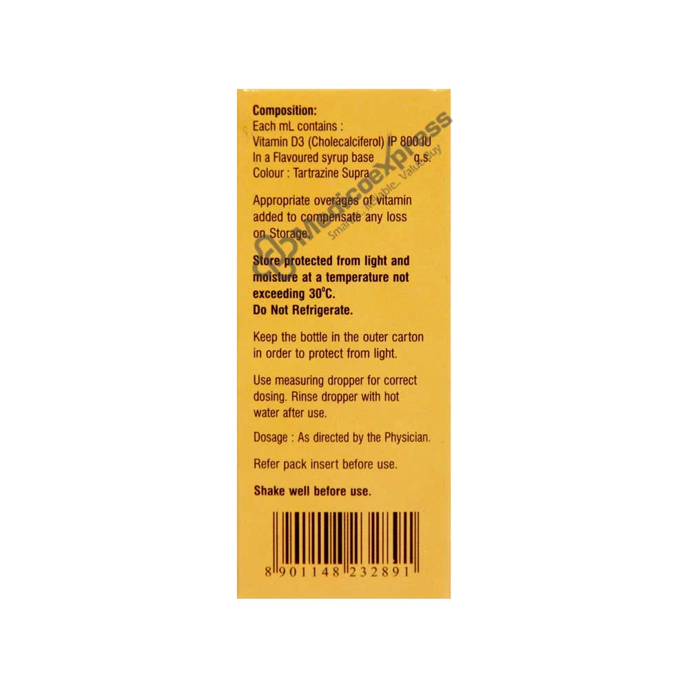 Kidrich-D3 Drops 15 ml 1's is generally employed to treat low blood calcium levels. Childrich-D3 800 IU/ml Treatment with Nano Drops 15 ml is effective for a number of health issues, including osteoporosis (weak and brittle bones), hypoparathyroidism (low calcium levels in the body caused by the parathyroid glands), latent tetany (a muscle disease caused by low blood calcium levels), and rickets or osteomalacia (softening or deforming of bones due to lack of calcium). Low vitamin D levels in the body are a sign of vitamin D insufficiency and can be brought on by poor diet, poor intestinal absorption, or a lack of sun exposure. Childrich-D3 800 IU/ml "Cholecalciferol," a vitamin-D type, is present in Nano Drops 15 ml.Disclaimer:For more information contact your physician.