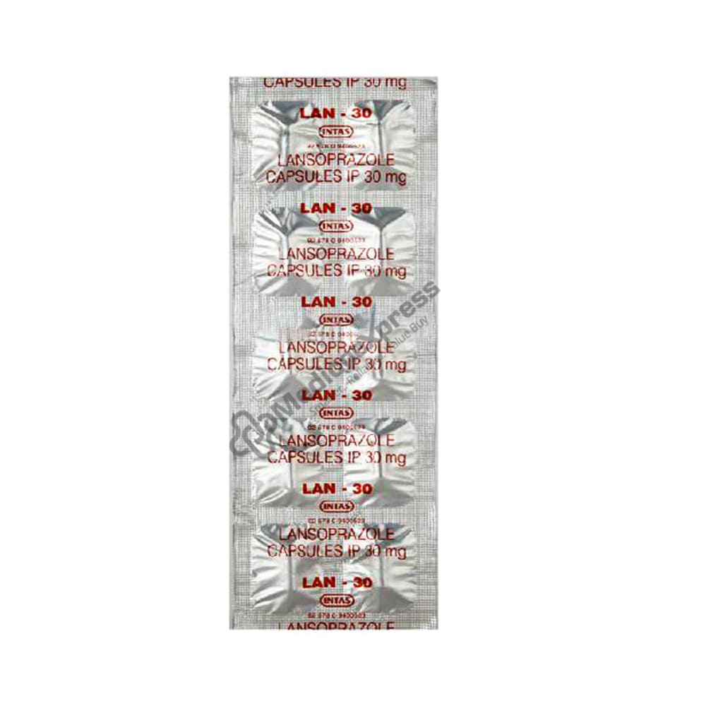 LAN 30 Capsule is an acid-reducing medication. It is used to treat stomach and intestine acid-related diseases such as acid reflux, peptic ulcer disease, and some other stomach conditions associated with excessive acid production.Disclaimer:For More Information Contact Your Physician