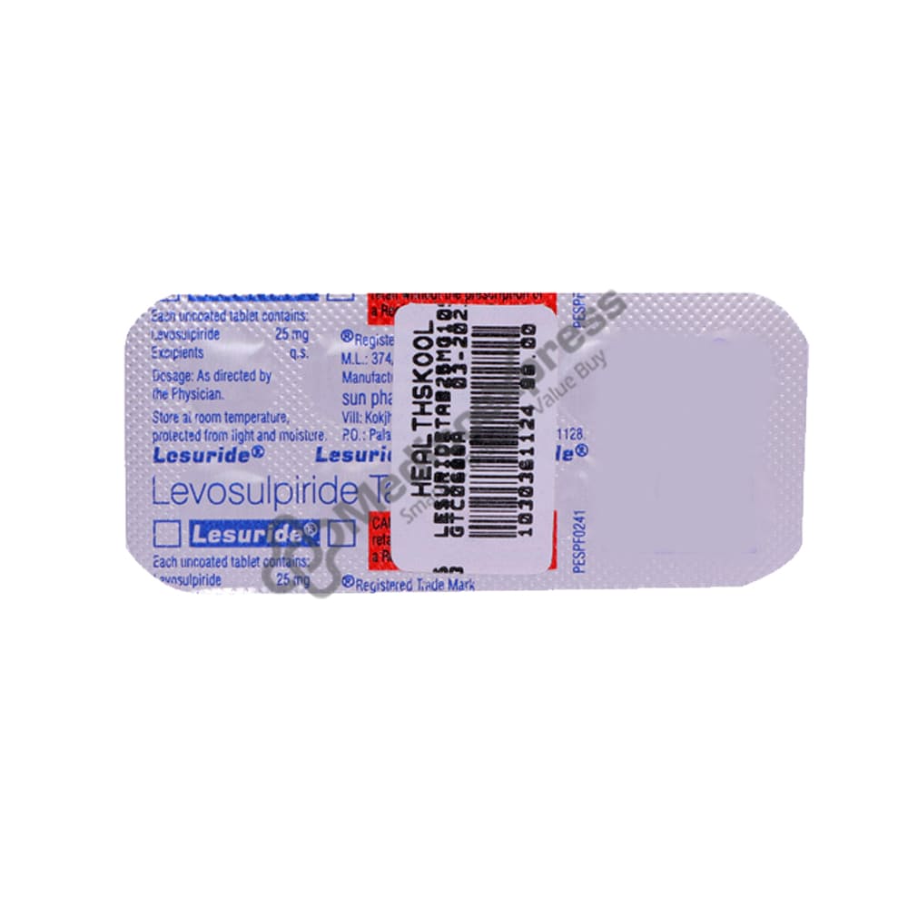 Lesuride 25 Tablet 10 belongs to a class of drugs known as "prokinetics, psycholeptics, and antipsychotics," which are used to treat gastroesophageal reflux disease (GERD), irritable bowel syndrome (IBS), and dyspepsia (indigestion).Disclaimer:For More Information Contact Your Physician
