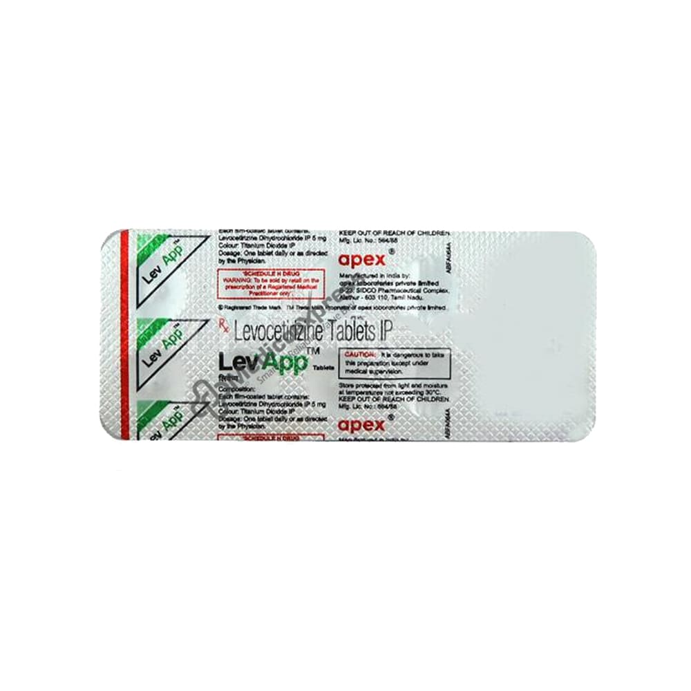 Levapp 5mg Tablet 10's is a member of the class of drugs known as antihistamines. It is used to treat a number of allergic diseases, including hay fever, conjunctivitis, eczema, hives, and reactions to stings and bites. Additionally, it stops itching, sneezing, runny nose, and watery eyes.Disclaimer:For more information contact your physician.