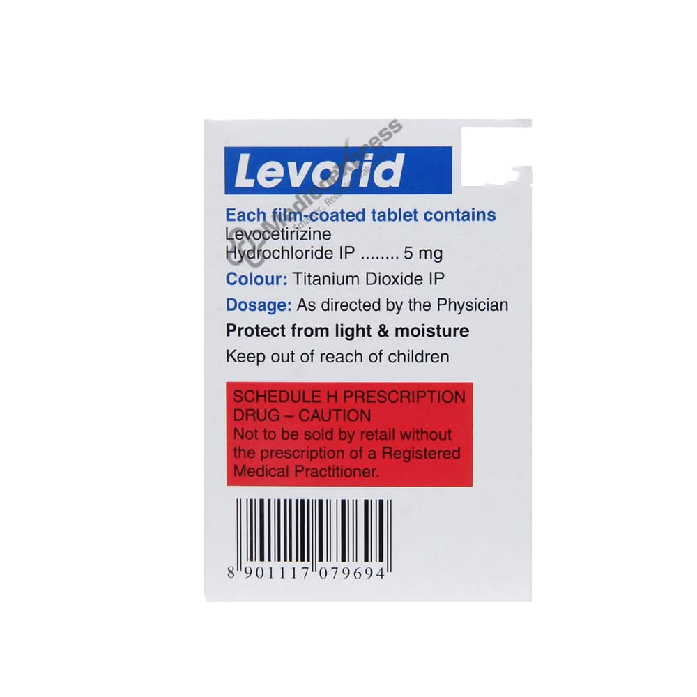 LEVORID TABLET contains Levocetirizine, which belongs to the class of drugs known as antihistamines. It is used in both adults and children to treat symptoms of allergic rhinitis (such as nasal congestion, itchy nose, repeated sneezing, and red, watery, and/or itchy eyes) and urticaria (allergic skin condition causing reddish raised patches on the skin with severe itching) (aged 6 years or above).Disclaimer:For More Information Contact Your Physician