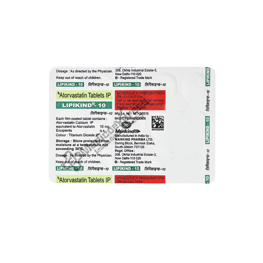 Lipikind 10mg Tablet 10's belongs to a class of drugs known as statins, which are used to treat high cholesterol levels in the body.Disclaimer:For More Information Contact Your Physician