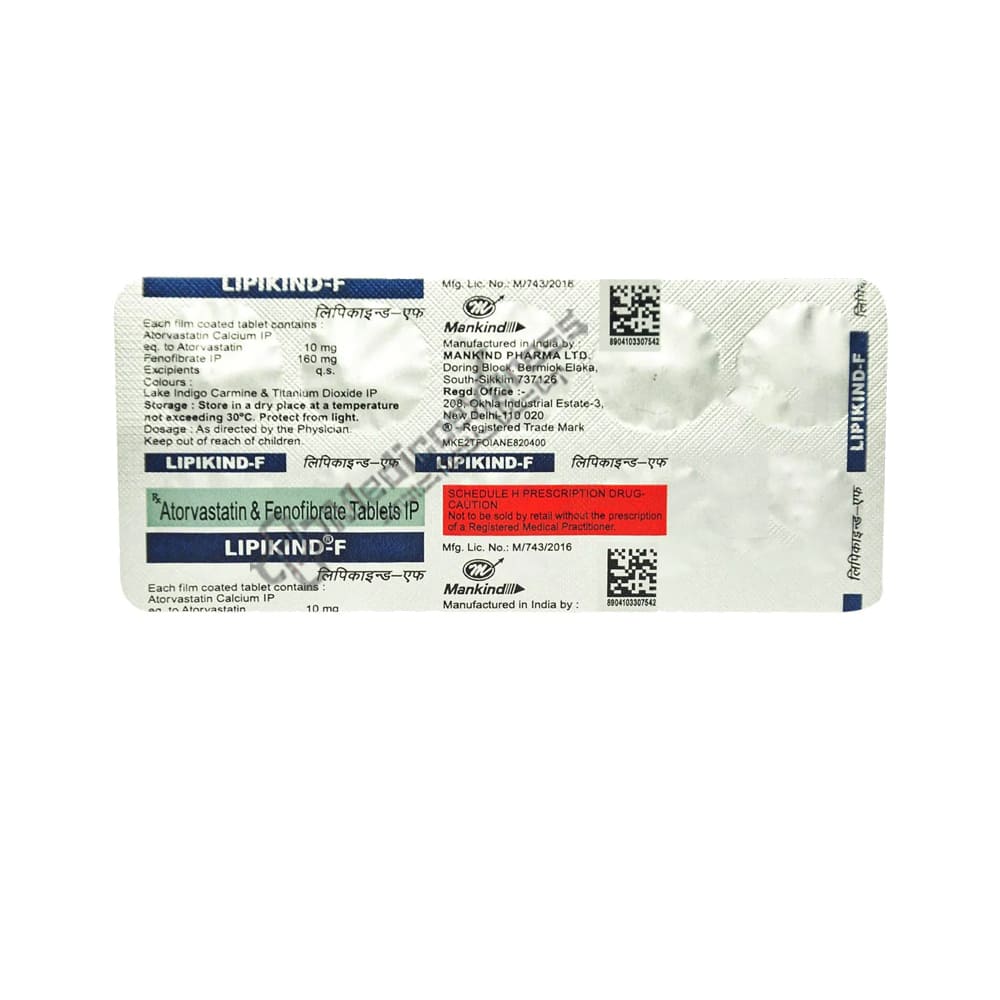 Lipikind F Tablet 10's is a drug combination made up of Atorvastatin and Fenofibrate, both of which lower cholesterol and bad lipids (triglycerides) in the blood and are primarily used to prevent heart disease and blood vessel blockage.Disclaimer:For More Information Contact Your Physician