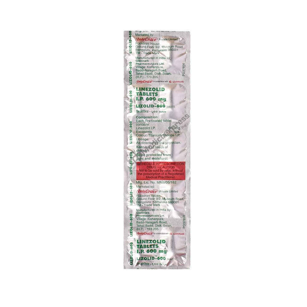 Lizolid 600 tablet 10's is a synthetic antibiotic that belongs to a novel class of antibiotics known as oxazolidinones. It is used to treat bacterial infections of the lungs and skin (pneumonia).Disclaimer:For more information contact your physician