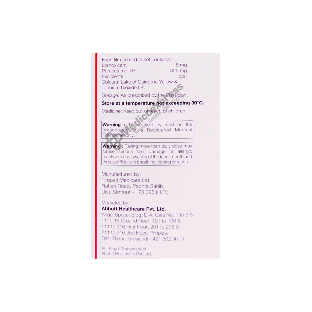 Lornoxicam 8mg + Paracetamol 325mg