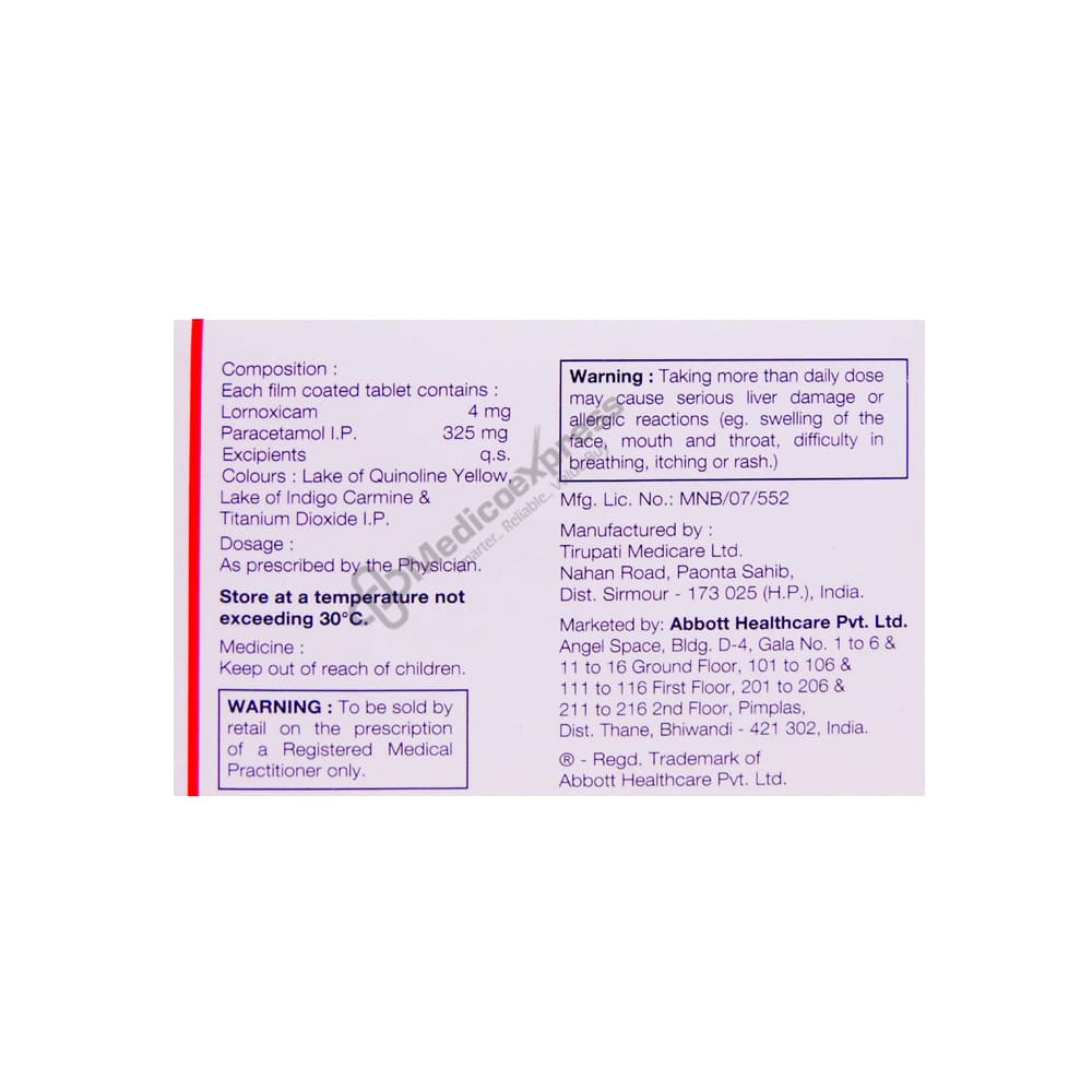 Lorsaid P Tablet 10 belongs to a class of drugs known as 'nonsteroidal anti-inflammatory drugs' (NSAID). It is made up of lornoxicam and paracetamol, which are primarily used to relieve pain and inflammation. Pain is a distressing sensory and emotional experience caused by actual or potential tissue damage.Disclaimer:For More Information Contact Your Physician