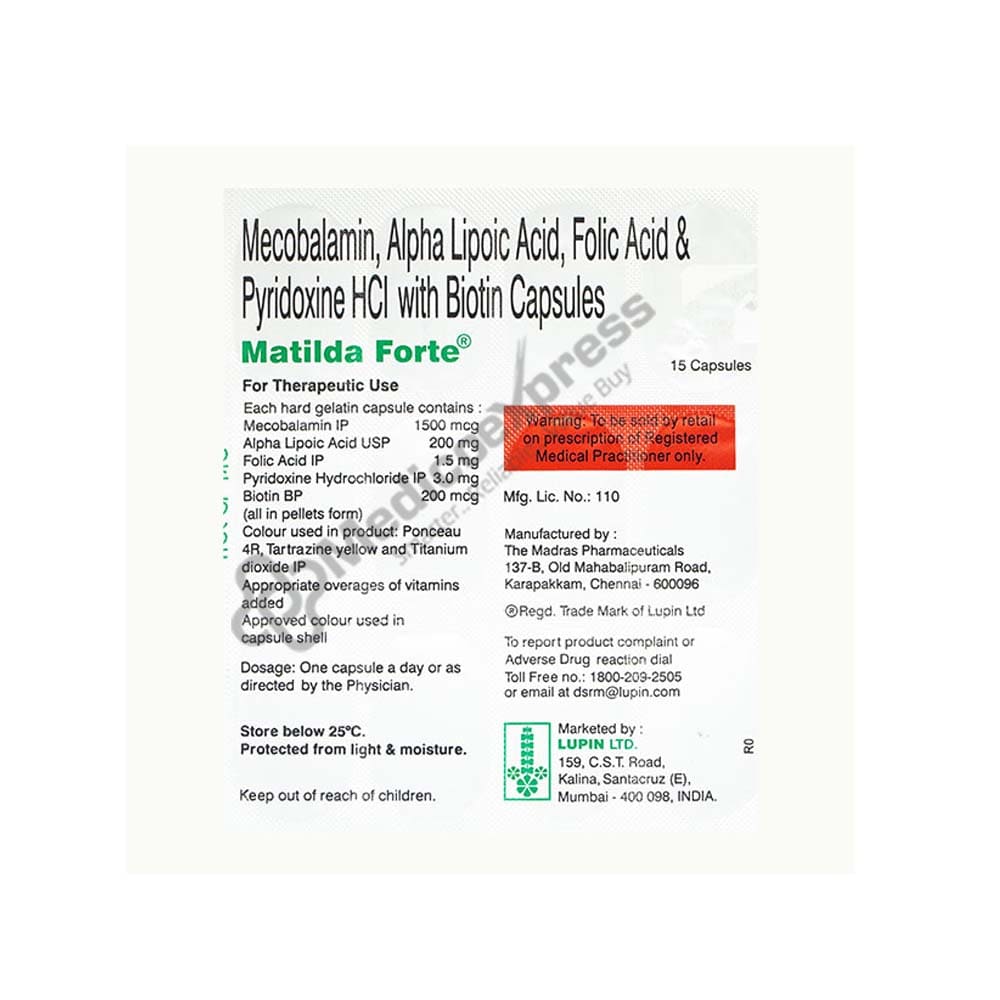 Matilda forte capsule is a combination medication used to treat diabetic neuropathy in diabetic patients.Disclaimer:For more information contact your physician