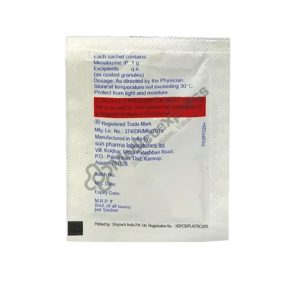 Granules Mesacol CR 1 gm is an anti-inflammatory drug, which is used to treat ulcerative colitis and Crohn's disease. Ulcerative colitis is a chronic inflammatory bowel disease that causes inflammation of the lining of the large intestine (colon). It causes ulcers on the lining of the colon, which can lead to bleeding and the discharge of pus and mucus.Disclaimer:For More Information Contact Your Physician