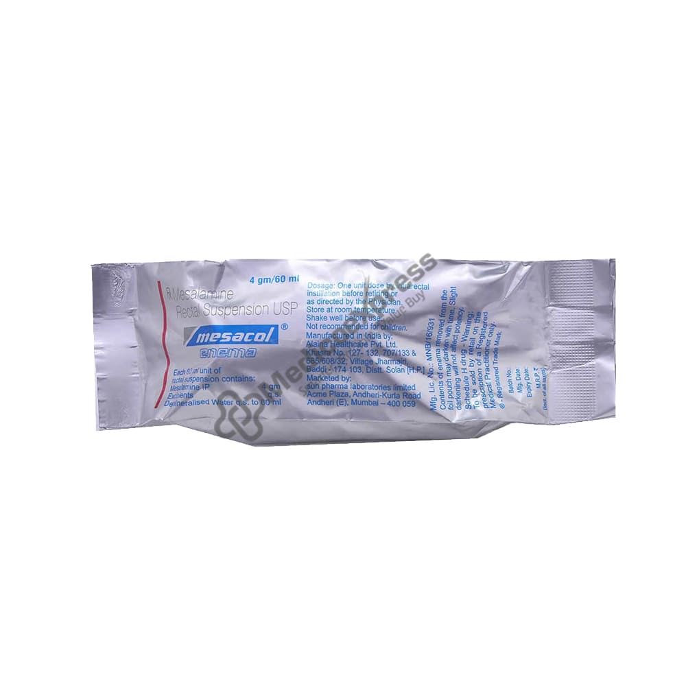 Mesacol Enema is an anti-inflammatory medication used to treat ulcerative colitis, a type of bowel disease. When the lining tissue of the inner rectum becomes inflamed, it is used (proctitis).Disclaimer:For More Information Contact Your Physician
