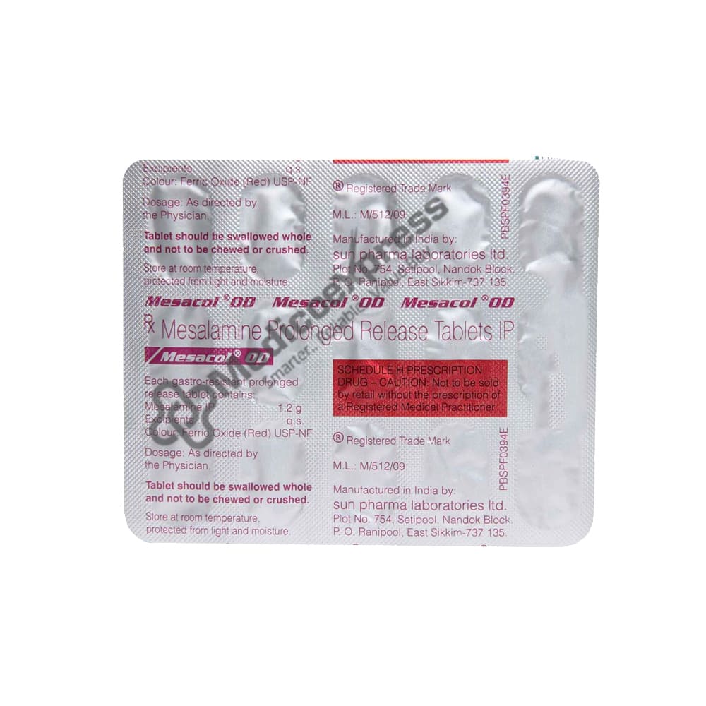 MESACOL OD contains the anti-inflammatory agent mesalamine. It treats and prevents mild-to-moderate ulcerative colitis. Ulcerative colitis is an inflammatory bowel disease characterised by swollen and inflamed bowel, colon, and rectum linings.Disclaimer:For More Information Contact Your Physician