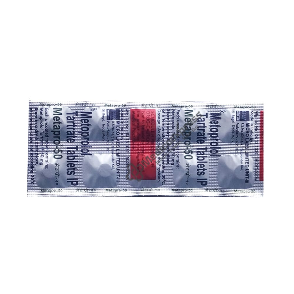 Metapro 50mg tablet 10's an antihypertensive medication that is used alone or in combination with other medications to treat high blood pressure (hypertension), symptoms produced by an overactive thyroid gland, heart-related chest discomfort (angina), and heart rhythm disorders (arrhythmia).Disclaimer:For more information contact your physician