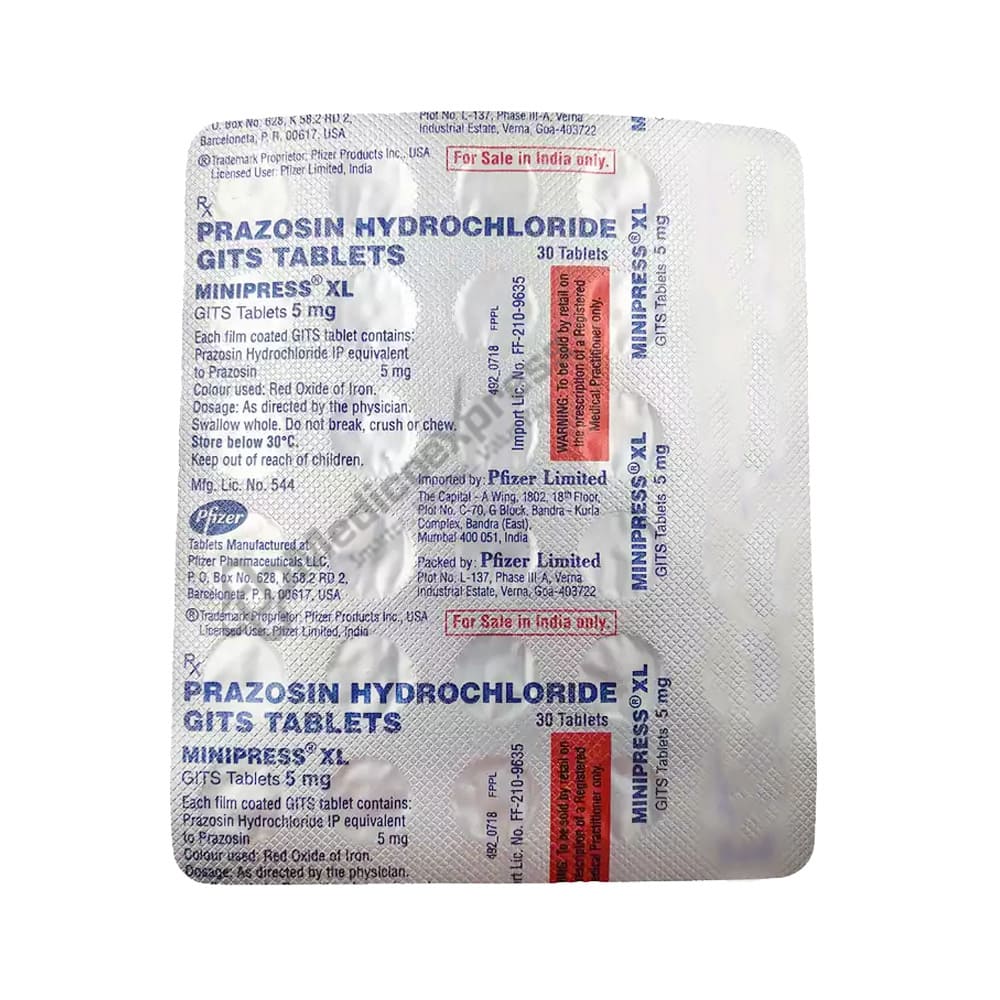 Minipress Xl 5 Tablet 30's Contain An 'Anti-Hypertensive' Medication That Is Primarily Used To Treat Hypertension (High Blood Pressure) And Reduce The Risk Of a Heart Attack Or Stroke In The Future.Disclaimer:For More Information Contact Your Physician