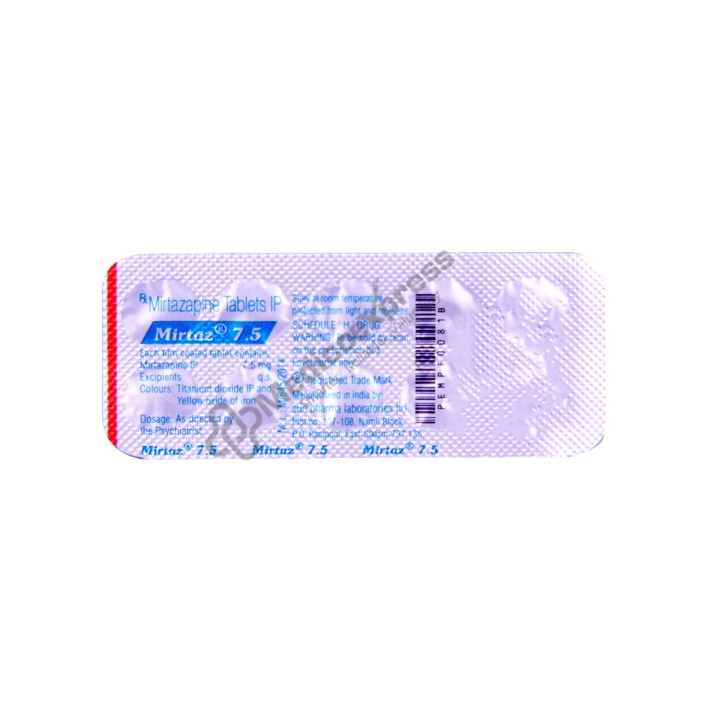 MIRTAZ 7.5MG contains mirtazapine, which belongs to the class of medications known as antidepressants. It is used to treat depression in adults.Disclaimer:For More Information Contact Your Physician