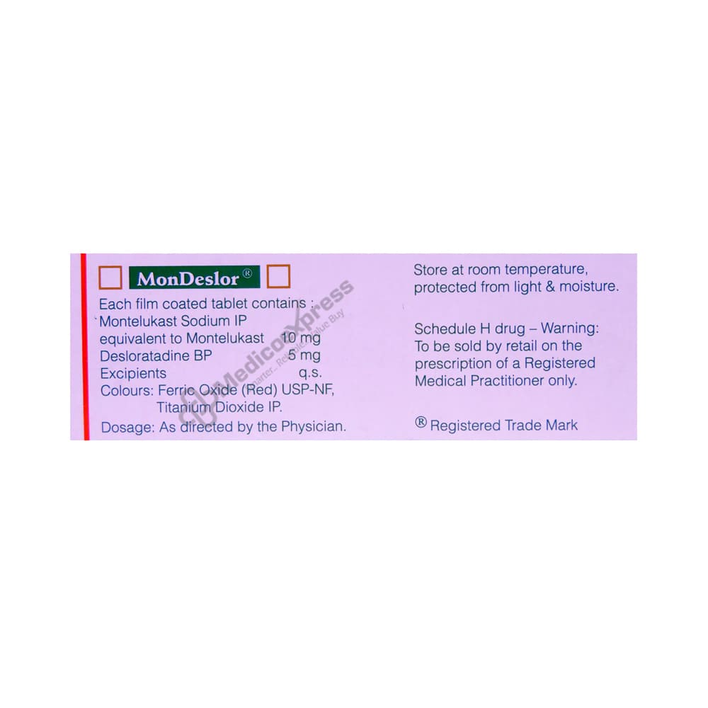 MonDeslor Tablet 10's is an antiallergic medicine used to treat allergic rhinitis.Disclaimer:For More Information Contact Your Physician