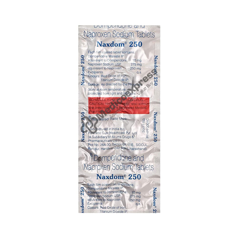 Naxdom 250 Tablet 10's belongs to the class of medicines known as analgesics. It is used to treat migraine headaches as well as discomfort caused by illnesses such as rheumatoid arthritis, gout, and dysmenorrhea (menstrual pain)Disclaimer:For More Information Contact Your Physician