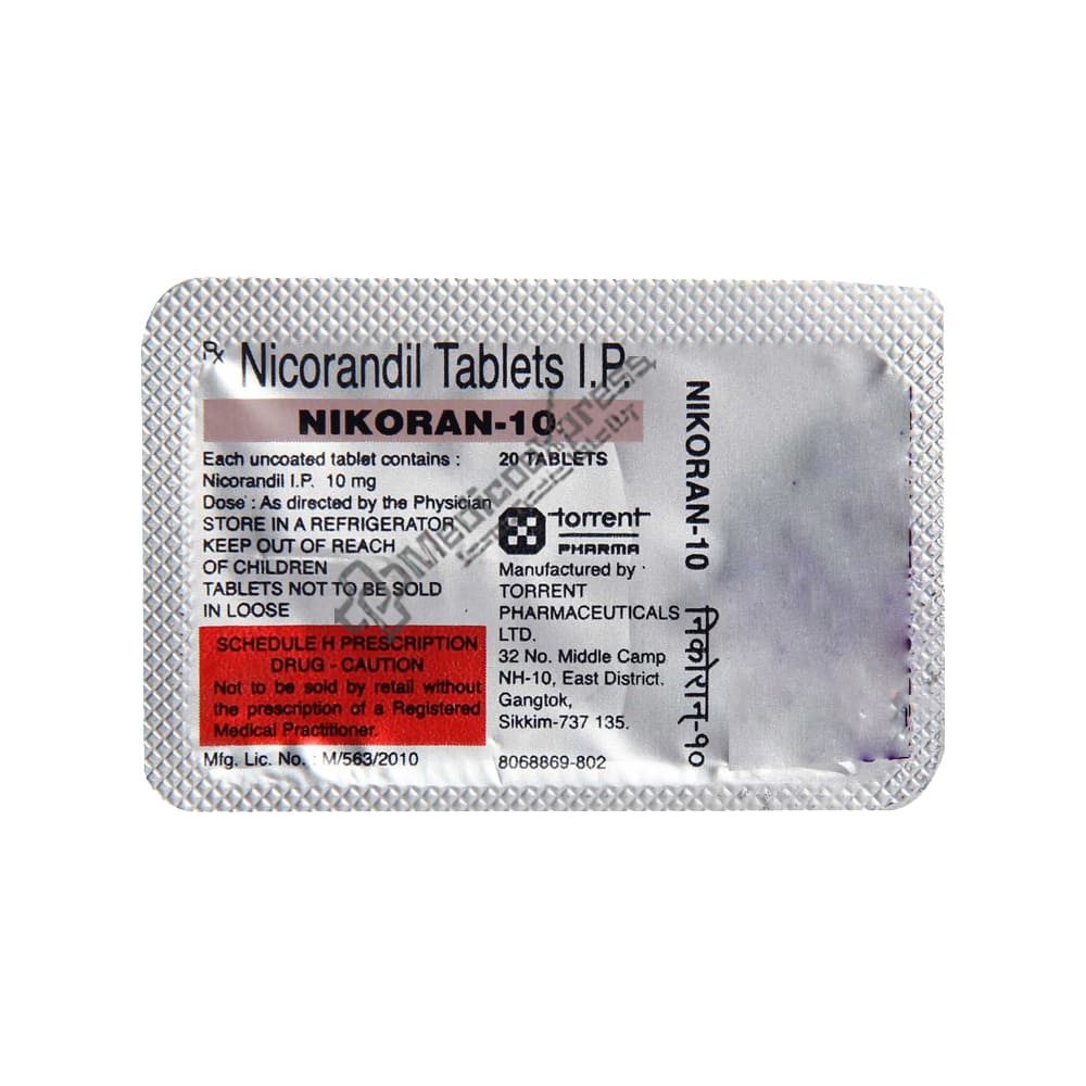 Nikoran 10 Tablet 20's Belongs To a Class Of Medications Known As 'Vasodilators,' Which Are Used To Prevent Or Treat Angina Pectoris (Heart-Related Chest Pain) In Adults Who Cannot Take Beta-Blockers (Blood Pressure-Lowering Pills).Disclaimer:For More Information Contact Your Physician