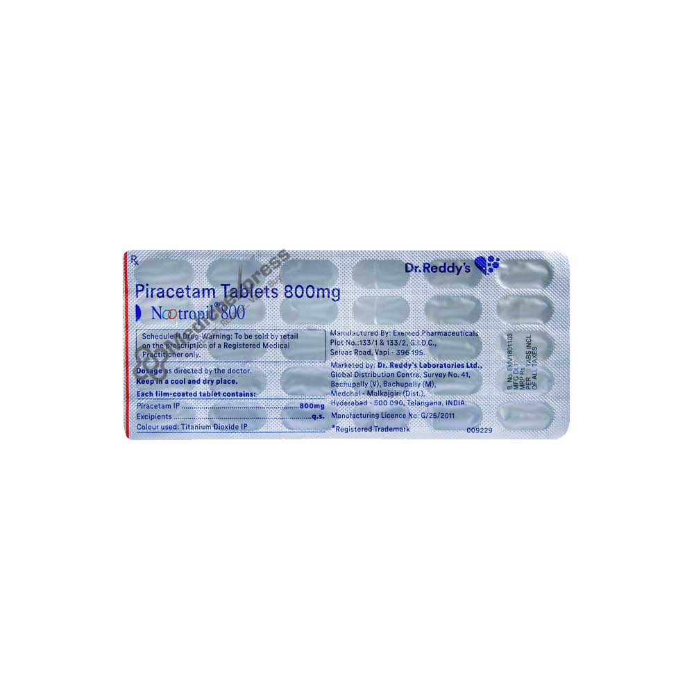 Nootropil 800 Tablet 30s, are medications used to treat myoclonus (a movement disorder). Additionally, Nootropil 800 Tablet 30's are used to treat vertigo, dyslexia (a learning disability), and memory problems in children over the age of 8. Uncontrollable twitching and jerky movements of the arms and legs are symptoms of the movement disorder myoclonus. Piracetam, an ingredient in Nootropil 800 Tablet 30's, works on the neurological system and brain to defend against oxygen deprivation. Additionally, it enhances the function of acetylcholine, a chemical messenger that facilitates communication between brain cells. Depending on your medical condition, you are encouraged to take Nootropil 800 Tablet 30's for as long as your doctor has prescribed it for you.Disclaimer:For more information contact your physician.