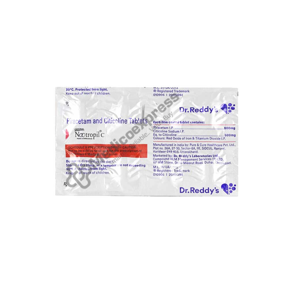 Nootropil C 500/800mg Tablet 10'S, which combines Citicoline and Piracetam, is categorised as a cerebroactive drug. For the treatment of an acute stroke, it serves as an adjuvant. A abrupt reduction in the delivery of blood, nutrients, and oxygen to the brain can result in an injury to the brain known as an acute stroke. One side of the body is typically paralysed, and other symptoms include loss of sensation, double vision, trouble sleeping, facial droop, loss of balance, vertigo, nausea, vomiting, headache, and/or impaired vision. Memory issues brought on by brain injuries and other age-related brain issues can also be treated with Nootropil C 500/800mg Tablet 10'S. If you have any liver or renal issues before using Nootropil C 500/800mg Tablet 10'S, let your doctor know.Disclaimer:For more information contact your physician.