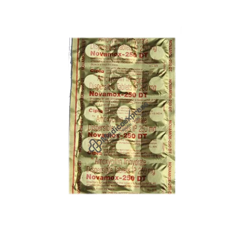 Novamox 250 DT Tablet 15 belongs to the penicillin class of antibacterial or antibiotics. It is used to prevent and treat bacterial infections such as pneumonia and bronchitis, ear/nose/throat (ENT) infections, urinary tract infections, skin infections, leg ulcers, gum ulcers, dental infections, and pressure sores.Disclaimer:For More Information Contact Your Physician