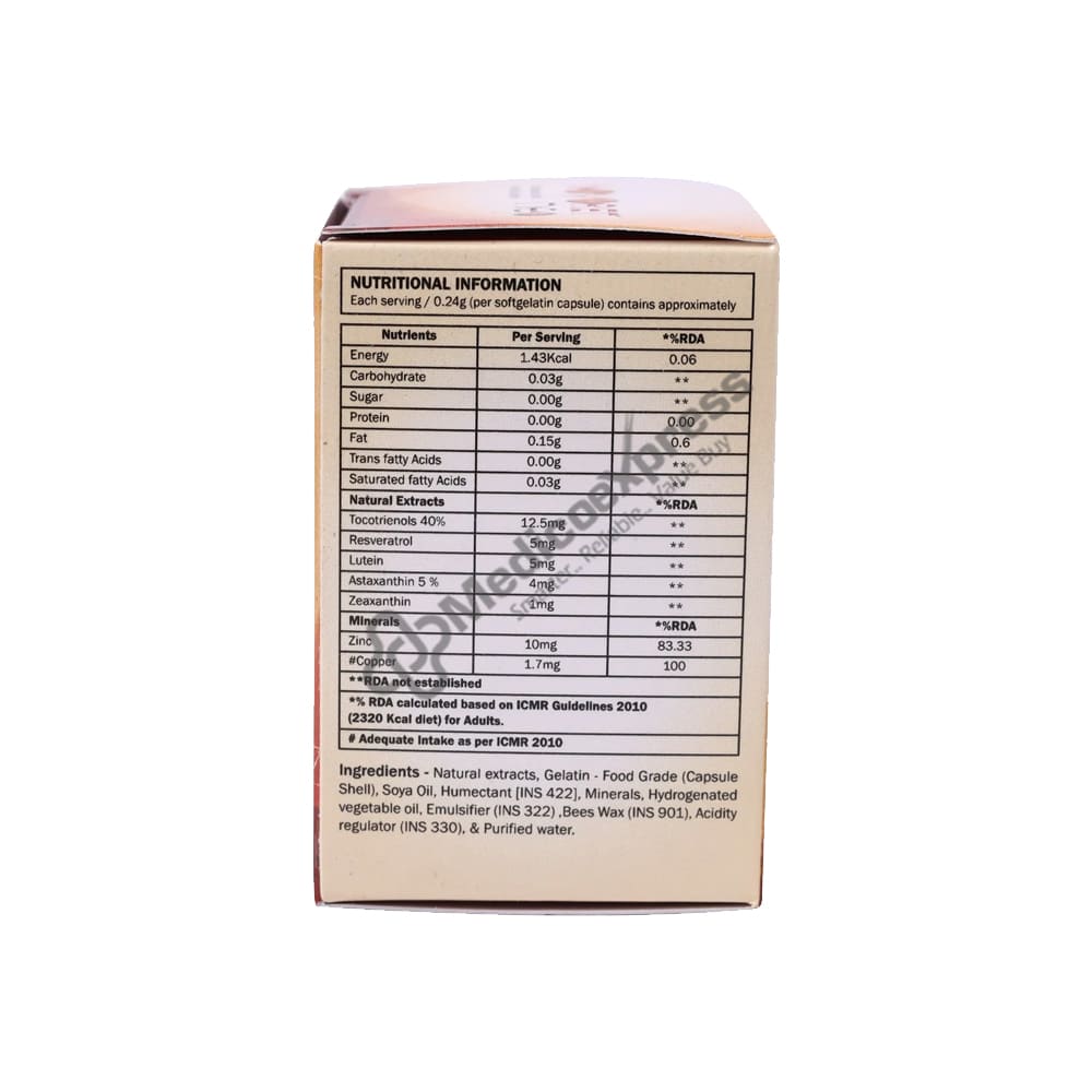 The Novoret Neo Softgel Capsule 10's natural extracts and minerals are used to treat a number of eye conditions, such as glaucoma, retinitis pigmentosa, cataracts, and dry eye syndrome. The risk of developing age-related macular degeneration is also decreased by using it (AREDS). The primary components that aid in treating numerous eye problems include tocotrienols, resveratrol, lutein, astaxanthin, and zeaxanthin, as well as zinc and copper.Disclaimer:For more information contact your physician.
