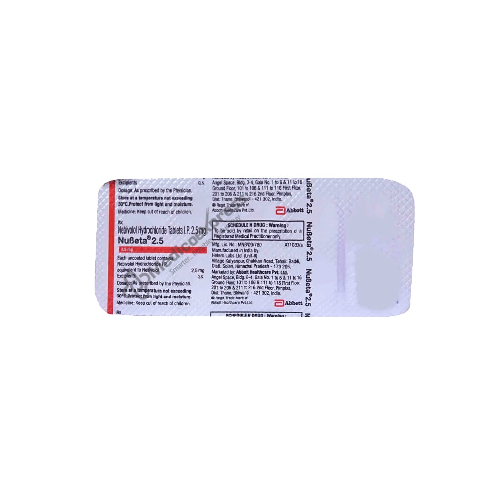 Nubeta 2.5 Tablet 10 belongs to the class of medications known as 'beta-blockers,' which are used to treat hypertension. In addition to other therapies, Nubeta 2.5 Tablet 10's is used to treat mild to moderate heart failure in patients aged 70 and older.Disclaimer:For More Information Contact Your Physician
