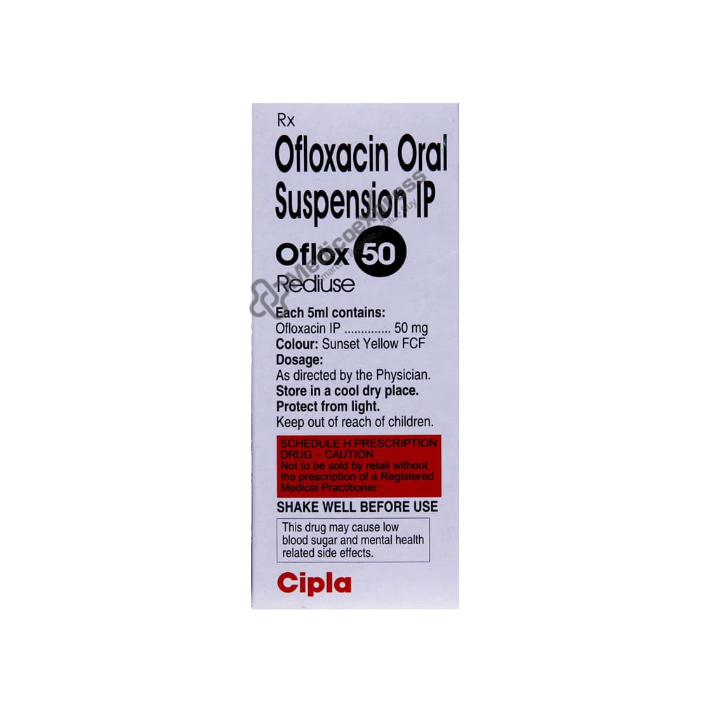 OFLOX 50MG REDUISE 60ML contains fluoroquinolone antibiotics, which are primarily used to treat bacterial infections such as pneumonia, gonorrhoea (a sexually transmitted disease), typhoid fever, infectious diarrhoea, and infections of the skin, eye/ear, bone, joint, abdomen, and prostate (male reproductive gland).Disclaimer:For More Information Contact Your Physician