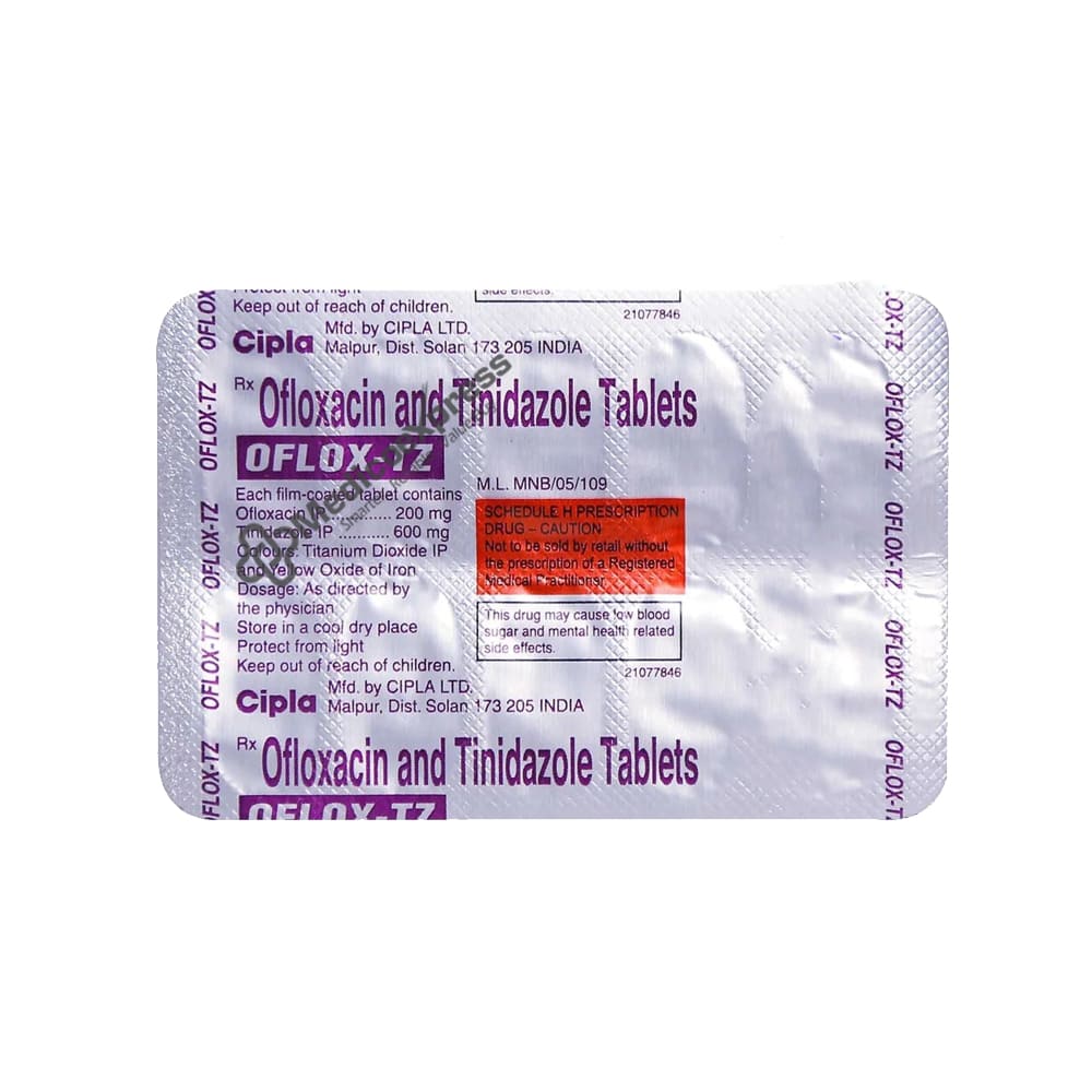 Oflox TZ Tablet 10's is a combination of antibiotics that is primarily used to treat infections caused by bacteria and protozoans. It is used to treat a wide range of infections caused by susceptible Gram-positive, Gram-negative, anaerobes, and protozoa.Disclaimer:For More Information Contact Your Physician