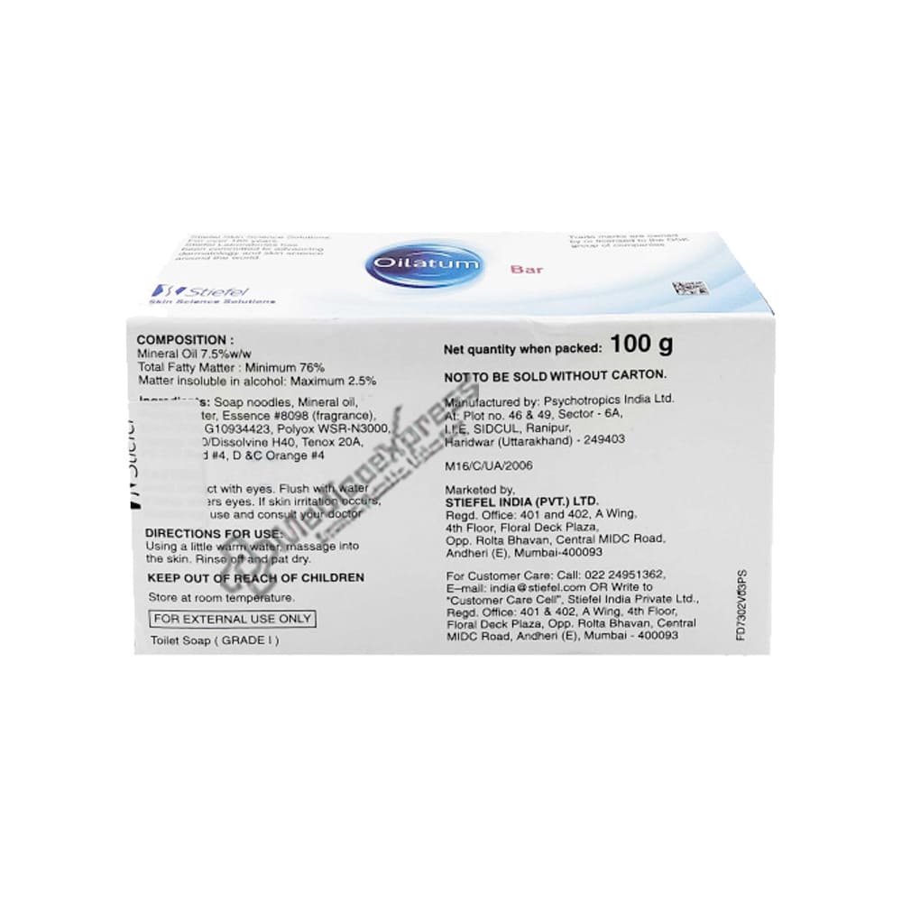 Oilatum bar is an emollient cleanser for dry and sensitive skin that can be used on a daily basis. It alleviates dryness and leaves the skin soft and smooth.Disclaimer:For more information contact your physician