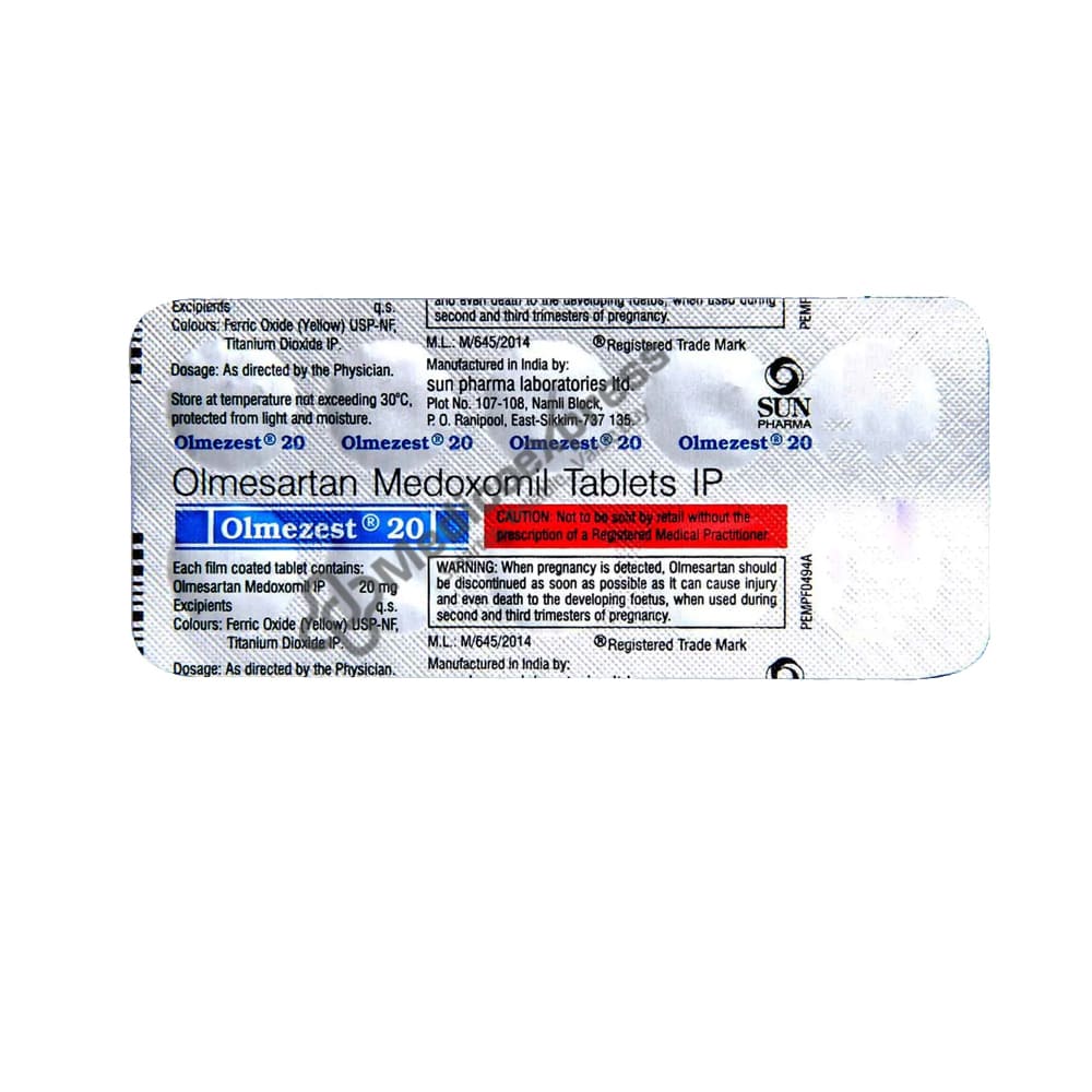 Olmezest 20 Tablet 10's Belongs To a Class Of Drugs Known As 'Atypical Antipsychotics,' Which Are Principally Used To Treat Schizophrenia And Manic Depression (Bipolar Disorder). Disclaimer:For More Information Contact Your Physician