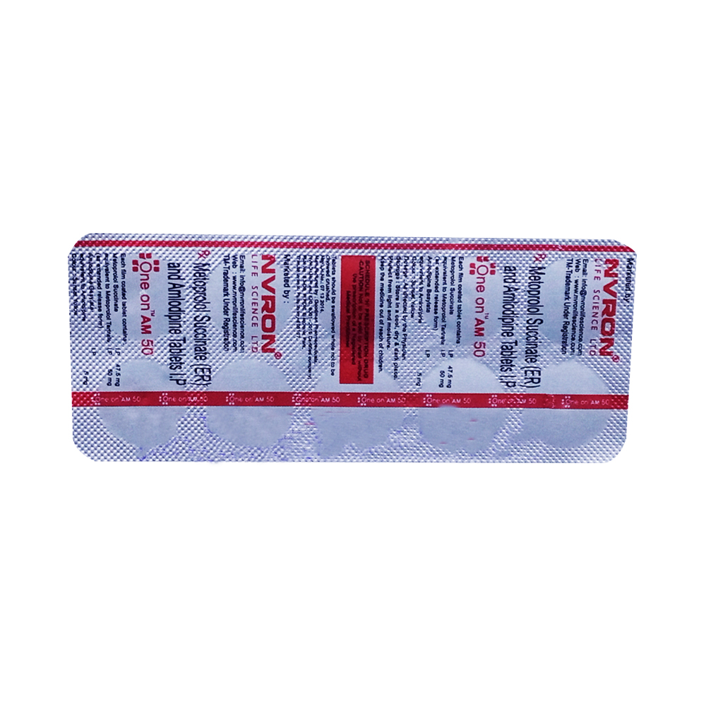 One On Am 50mg Tablet 10'S An Antihypertensive Medication Used To Treat High Blood Pressure/Hypertension And Angina Pectoris.Disclaimer:For More Information Contact Your Physician