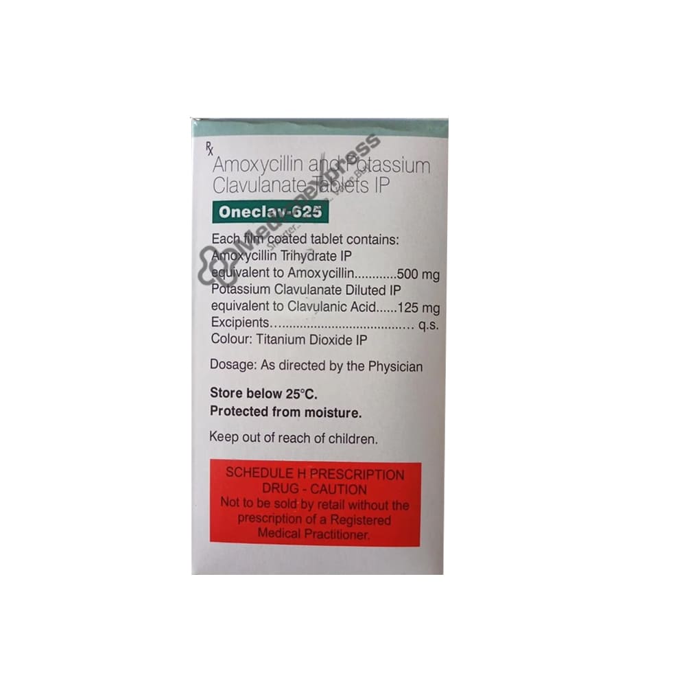 Oneclav 625mg Tablets 6'S is a member of the penicillin combination class of antibiotics. It is a versatile antibiotic that fights several kinds of bacteria. Amoxicillin, an antibiotic with active ingredients, and clavulanic acid are the two medications that make up Oneclav 625mg Tablets 6'S (that boosts the efficacy of the amoxicillin). Middle ear and sinus infections, respiratory tract infections of the throat or lungs, urinary tract infections, skin infections, soft tissue infections, dental infections, joint and bone infections are among the conditions for which doctors typically prescribe Oneclav 625mg Tablets 6'S. You can get sick from harmful or contagious bacteria, and they can proliferate swiftly in your body. Toxins, which are substances produced by these hazardous bacteria, can injure tissue and make you ill. Amoxicillin kills the bacteria by damaging the outer protein layer (bactericidal).
