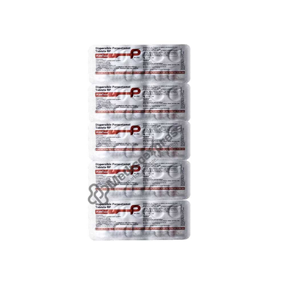 P 250 mg Tablet 10s are part of the class of drugs known as analgesics (pain relievers) and antipyretics (fever-reducers), which are used to treat mild to moderate pain and lower fever. Additionally, it is utilised to treat rheumatic, dental, menstrual, back, and muscle problems as well as headache, migraine, and toothache discomfort. Fever and discomfort are brought on by the activation of pain receptors brought on by the body's natural substances like prostaglandin being released.Disclaimer:For more information contact your physician.