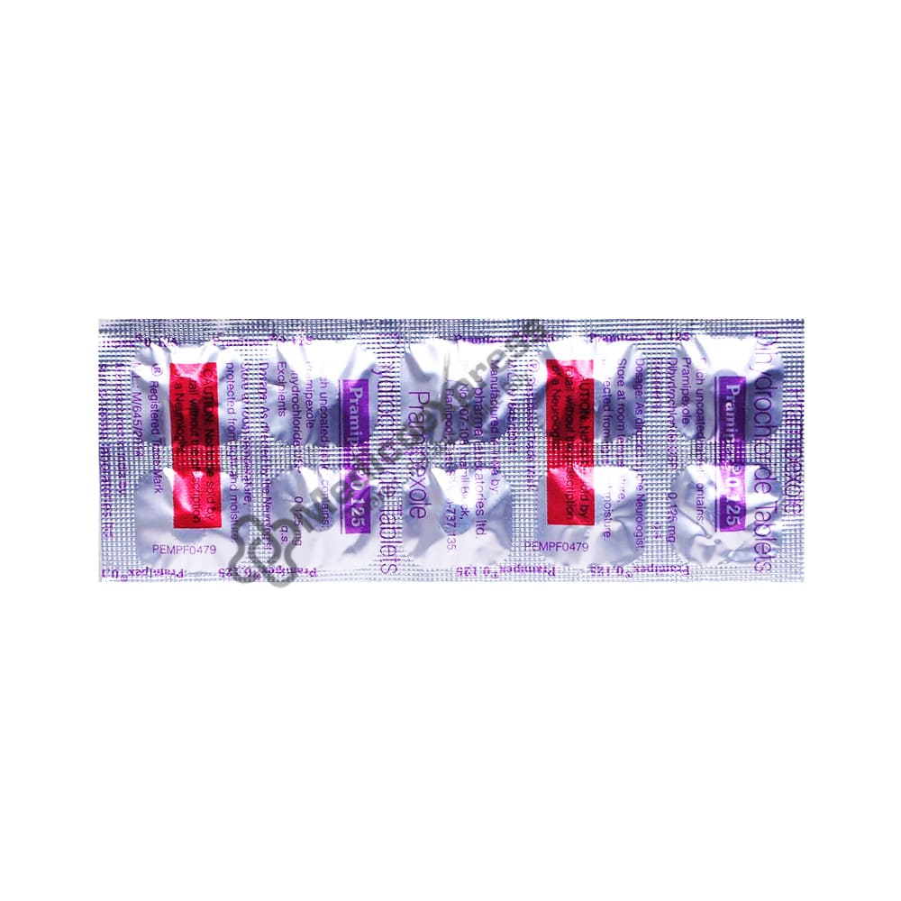 Pramipex 0.125 Tablet is a medication used to treat Parkinson's disease and restless leg syndrome (an urge to move the legs usually accompanied or caused by uncomfortable and unpleasant leg sensations). It aids in the treatment of excessive shaking by slowing down the body's movements.Disclaimer:For More Information Contact Your Physician