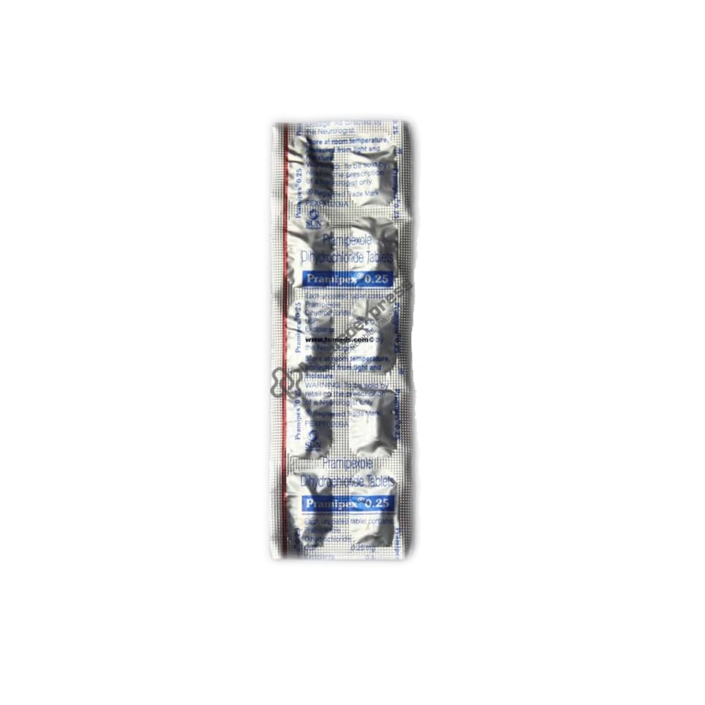Pramipex 0.25 Tablet is a medication used to treat Parkinson's disease and restless leg syndrome (an urge to move the legs usually accompanied or caused by uncomfortable and unpleasant leg sensations). It aids in the treatment of excessive shaking by slowing down the body's movements.Disclaimer:For More Information Contact Your Physician