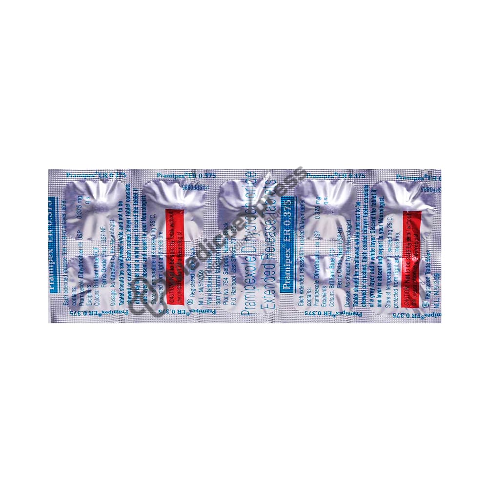 Pramipex ER 0.375 Tablet 10 is a dopamine agonist that is used to treat the symptoms of Parkinson's disease and moderate to severe Willis-Ekbom disease (restless legs syndrome) in adults.Disclaimer:For More Information Contact Your Physician