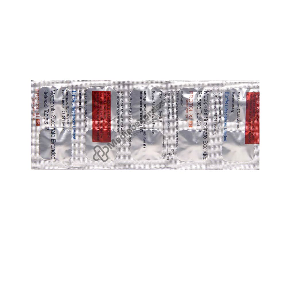 Protol XL 25 Tablet 10's belongs to a group of medicines called beta-blockers used to treat high blood pressure (hypertension), heart-related chest pain (angina), irregular heart rhythm (arrhythmia), and to protect the heart after a heart attack (myocardial infarction). Disclaimer:For More Information Contact Your Physician