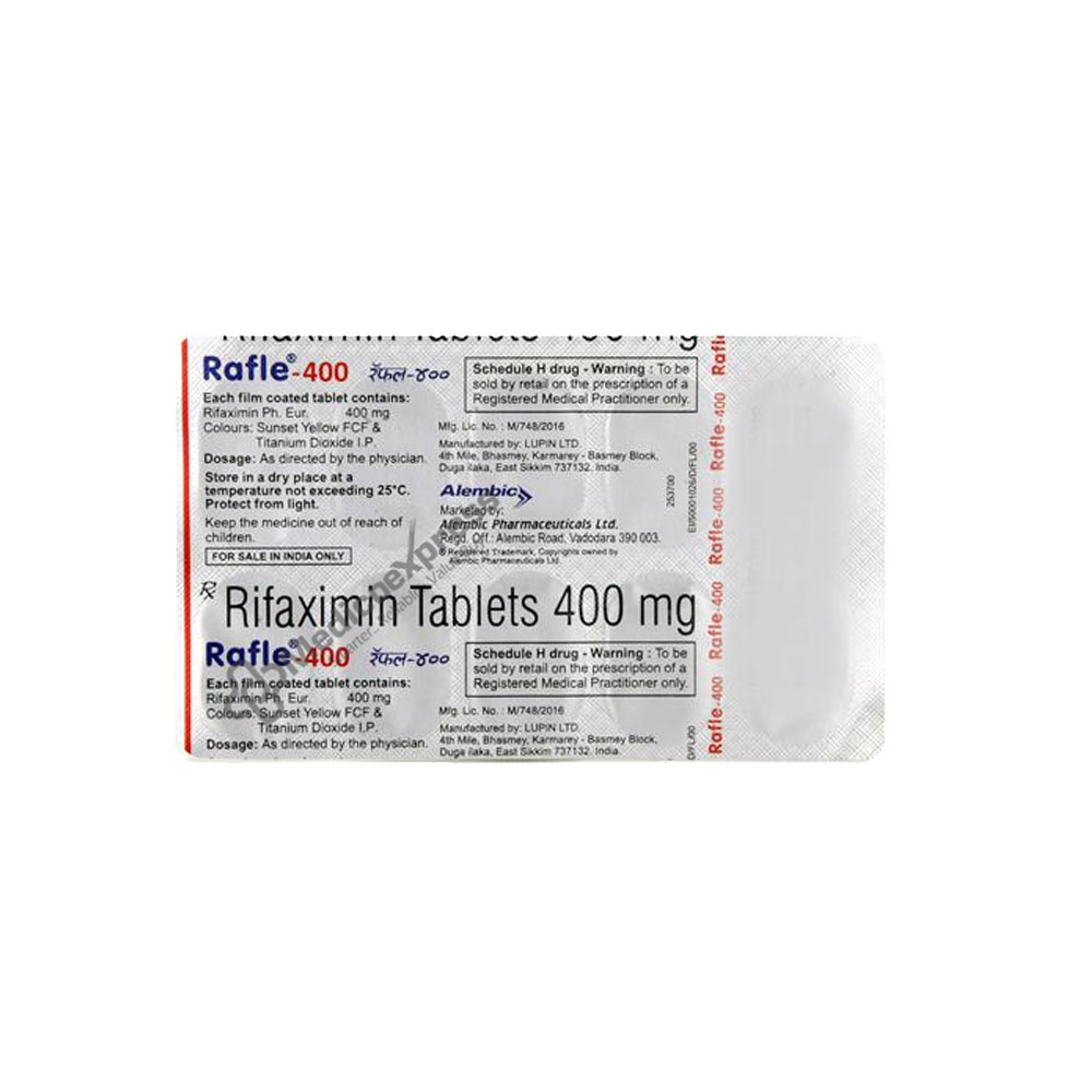Rafle-400 Tablet 10's are antibiotics or antibacterials that are used to treat infectious traveller's diarrhoea (in adults and children over the age of 12) caused by E.coli bacteria, hepatic encephalopathy (decreased brain function due to liver disease), and irritable bowel syndrome with diarrhoea (IBS-D).Disclaimer:For More Information Contact Your Physician