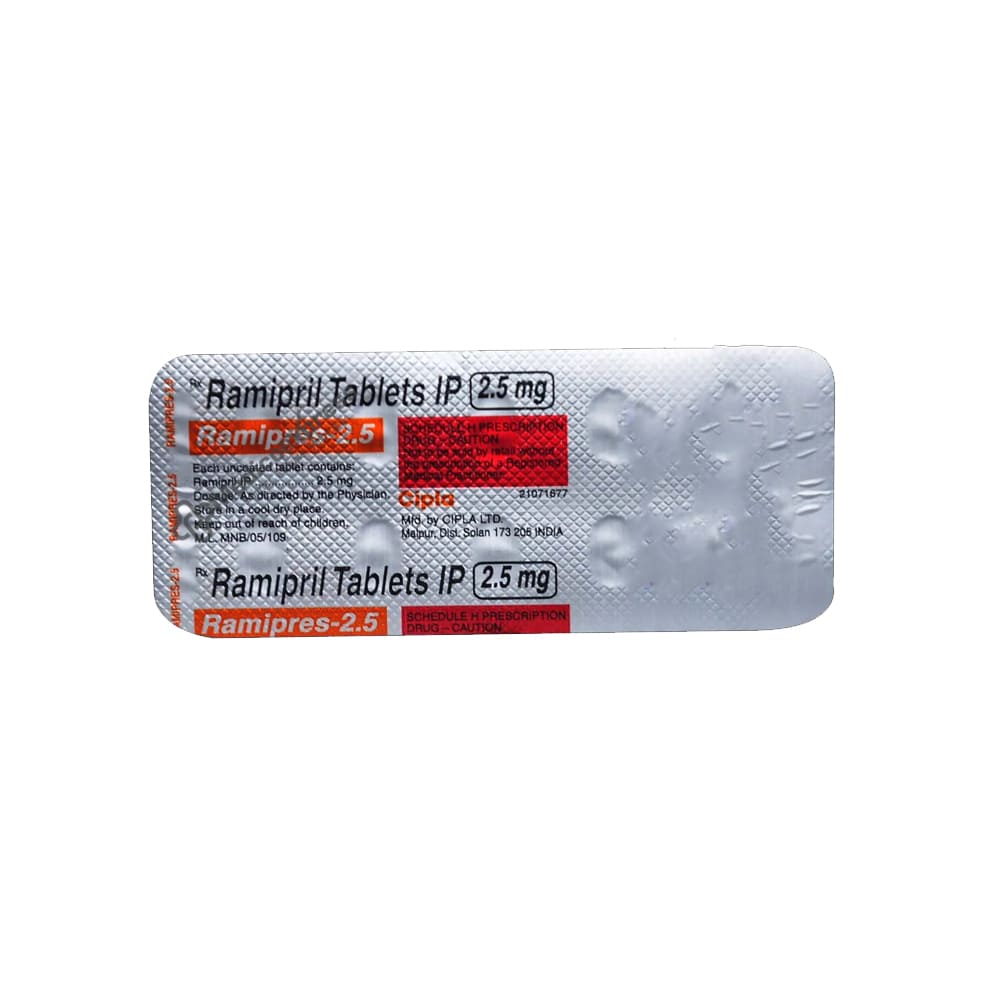 Ramipres 2.5 Tablet 10 belongs to the class of blood pressure medications known as 'Angiotensin-Converting Enzyme (ACE) Inhibitors,' which are primarily used to treat high blood pressure (hypertension) and lower the risk of having a heart attack, stroke, or heart failure.Disclaimer:For More Information Contact Your Physician